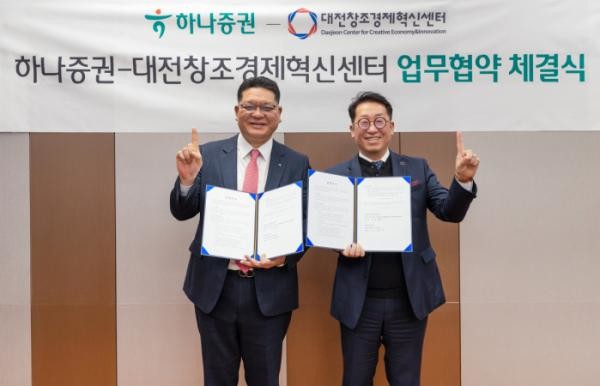 ▲하나증권은 대전창조경제혁신센터와 스타트업 생태계 활성화를 위한 업무협약을 체결했다.(사진=하나증권 제공) |