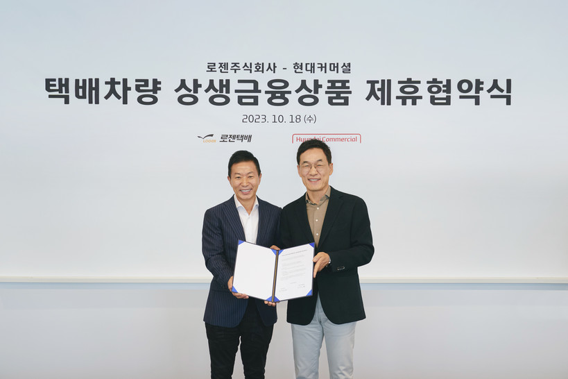 [일요주간 = 김완재 기자] 현대커머셜이 로젠 주식회사(이하 로젠)와 함께 택배 차주들을 위한 ‘택배차량 상생금융상품 제휴 협약’을 체결했다고 18일 밝혔다.