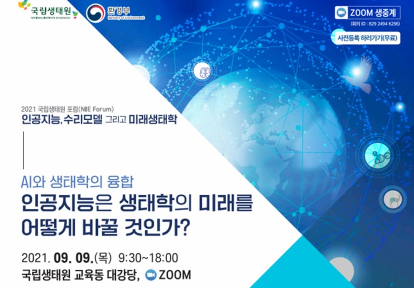 인공지능 기술을 접목한 자연생태계의 변화 예측방안을 모색하기 위해 전기·전자공학, 생태학, 미래학 등 다양한 전문가 10인이 강연자와 토론자로 나선다.