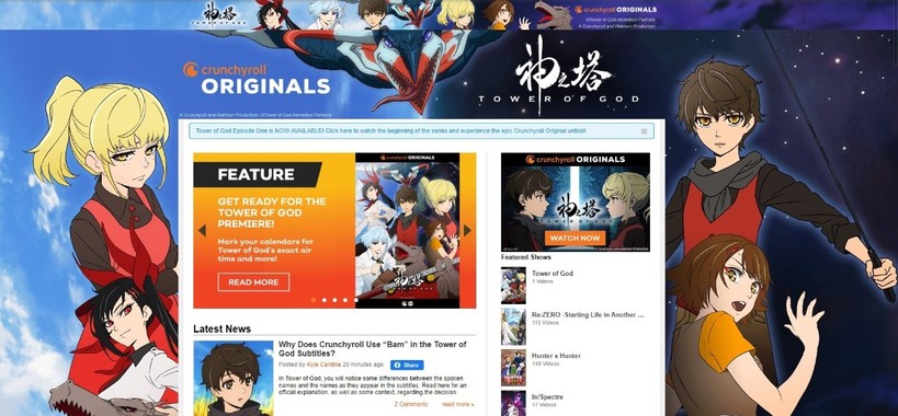 ▲ 애니메이션 제작된 웹툰 원작 '신의 탑' 제작사 홈페이지 (이미지=크런치롤) |
