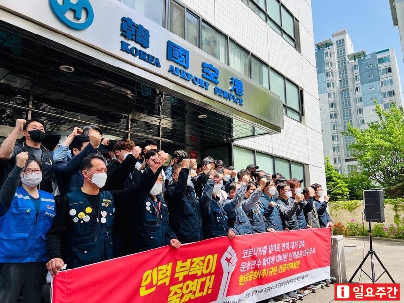 이번 사고와 관련해 공공운수노조 민주한국공항지부는 27일 오후 12시 30분, 한국공항 본사 앞에서 중대재해 재발방지 대책을 촉구하는 긴급 기자회견 열고 "한국공항은 코로나19를 빌미로 인력을 대거 감축하면서 무리하게 회사를 운영하고 있었고, 화물 운송기의 확대와 코로나에 따른 항공기의 운항편수 확대를 대비하면서도 인력충원은 없었다"며 "반복되는 야근과 폭발적인 업무로 민주한국공항지부는 계속해서 인력충원을 이야기했지만, 회사는 듣지 않았다"고 지적했다.