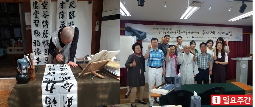 ▲ 청호스님은 신도들에게 서예를 가르치고 직접 가훈 등을 써 선물하기도 한다. 그리고 지역활동으로 주민들을 위한 서예교실에 재능기부도 하고 있다. |