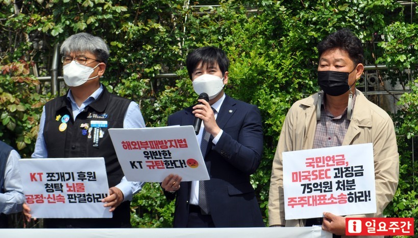 이어 “이는 결국 미국 증권거래위원회(SEC)까지 나서 미국 증권거래소 상장기업인 KT의 뇌물 제공자 요건 충족 여부 등 해외부패방지법 위반을 조사하기에 이르렀고 KT는 범죄 사실을 인정하고 더는 제재를 하지 않는 조건으로 과징금 350만달러(한화 약 42억 3800만원)와 추징금 280만달러(한화 약 33억 9000만원)를 지급하기로 합의했다”라고 설명했다. 미 증권 당국과 플리바게닝(plea bargaining·유죄협상제) 과정에 구현모 KT대표이사가 있는 셈이다.
