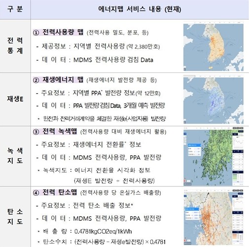▲ 에너지맵 서비스 내용(이미지=한전) |
