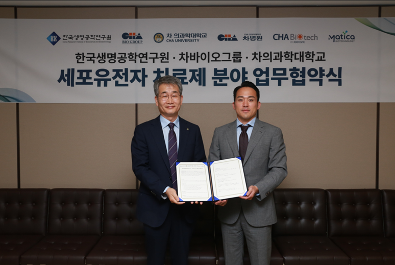 차 의과학대학교와 차병원·차바이오그룹은 지난 26일 판교 차바이오컴플렉스(CBC)에서 생명연과 세포·유전자치료제 공동연구개발을 위한 업무협약(MOU)을 체결했다고 30일 밝혔다.