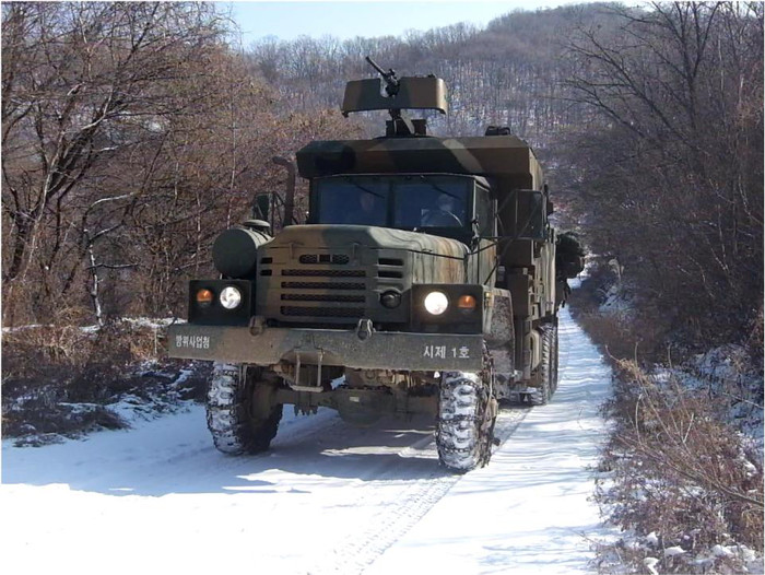 | ▲105mm 자주곡사포를 탑재한 군용 5톤 트럭.(사진=newsis) |