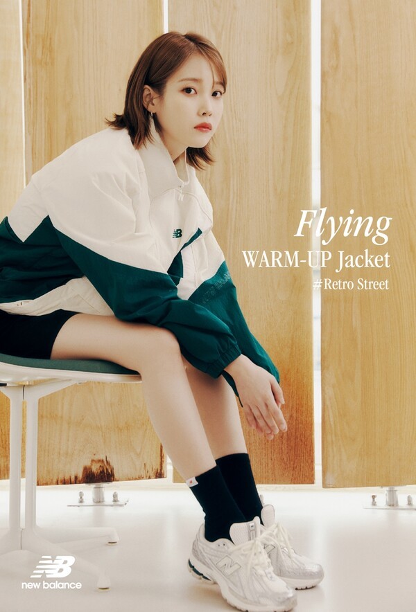 화보 속 아이유가 착용한 ‘플라잉 웜업 자켓’은 봄에 입기 적합한 두께감의 뉴발란스 대표 바람막이 상품으로 절개 패턴과 컬러 블록 디자인을 적용해 뉴발란스만의 감성을 담았다.