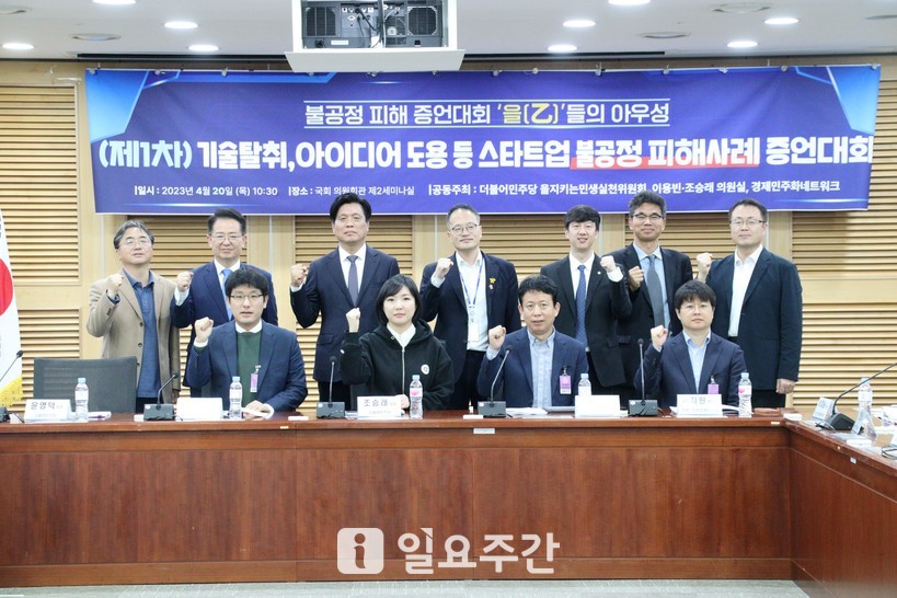 [일요주간 = 조무정 기자] 대기업의 스타트업 기술탈취 및 아이디어 도용 의혹이 잇따라 제기되면서 중소기업, 스타트업의 기술보호를 위한 법제도적 대책 마련이 필요하다는 목소리가 커지고 있는 가운데 스타트업 기업들의 피해 증언대회가 20일 오전 국회에서 개최됐다.