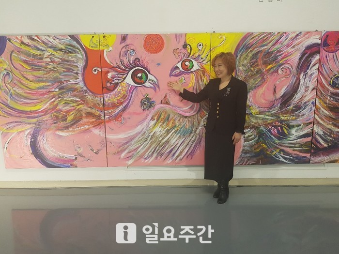 [일요주간 = 최철원 기자] 대구 미술협회 주관 대구 아트피아 전시장 단체전에서 봉황화로 큰 호평을 받고 있는 신경미 작가를 만났다. 신경미 작가는 동양의 전통적인 소재인 봉황을 수묵이 아닌 채색으로 녹여 내 오늘 미술계의 눈과 귀를 사로잡은 작가, 그녀와의 짧은 대담을 통해 작가 내면 속의 그림을 면밀히 들여다보았다.