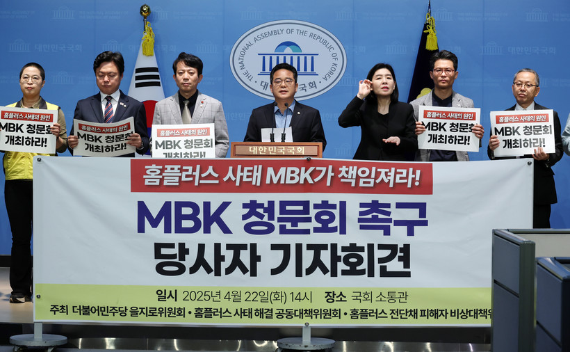 강우철 위원장은 발언문을 통해 "MBK 김병주 회장과 김광일 부회장의 책임을 묻는 청문회가 반드시 개최돼야 한다"고 주장했다.