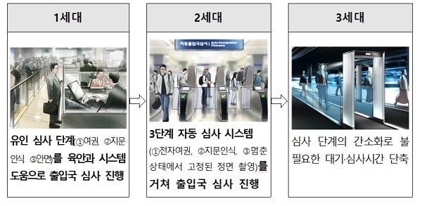 공항 출입국 심사가 간소화 되면 현재 3단계(여권·지문·안면 확인)에서 앞으로 안면 인식만으로 신원 검증을 대체해 불필요한 심사 과정이 사라진다.