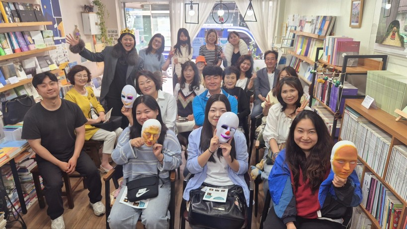 ▲ 책방에서 <오이디푸스>낭독 공연 후 연극 배우들과 함께 |