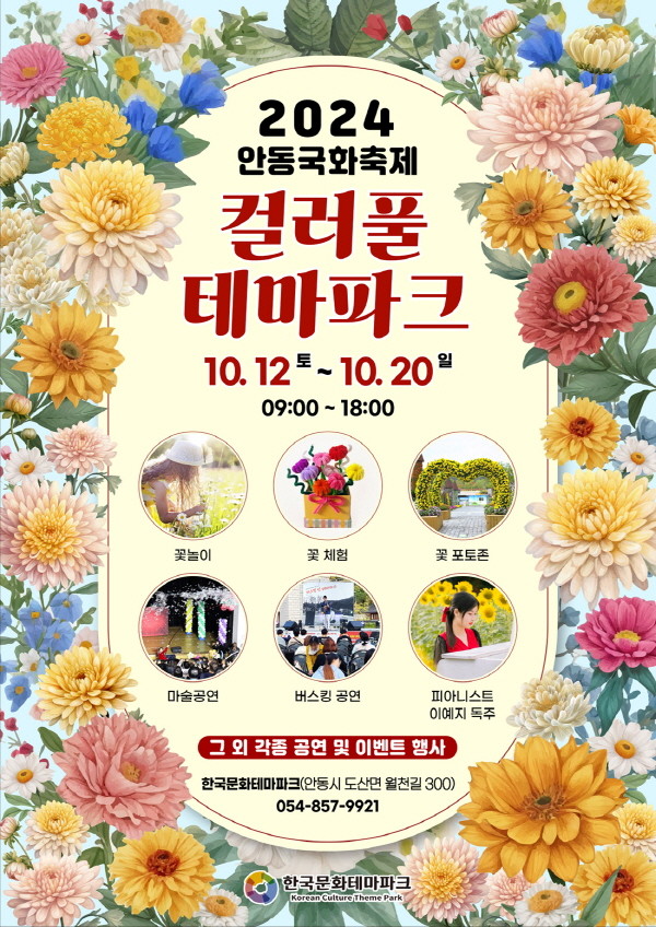 [일요주간=최부건 기자] 안동시 도산면에 위치한 한국문화테마파크(이하 테마파크)에서 청명한 가을 날씨에 걸맞은 꽃축제, ‘컬러풀 테마파크’ 행사가 오는 10월 12일(토)부터 10월 20일(일)까지 개최된다.