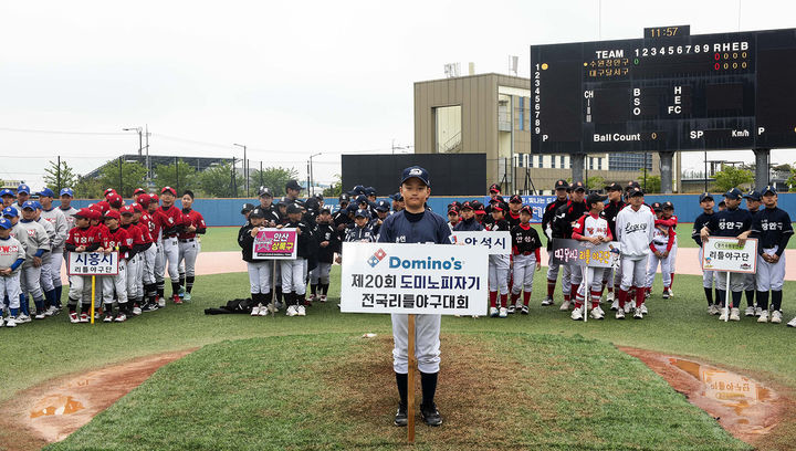 ▲ '제 20회 도미노피자기 전국 리틀야구대회' 개막 사진. (사진=도미노피자 제공) |