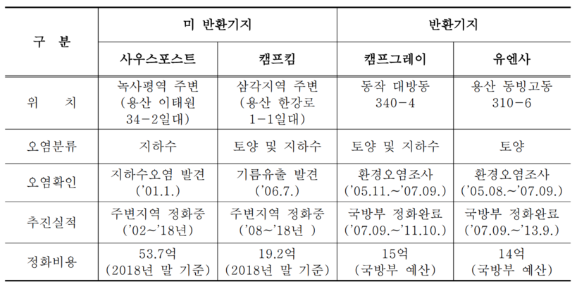 ◇ 용산 미군기지 일대 환경오염 정화 후속조치 '미흡'