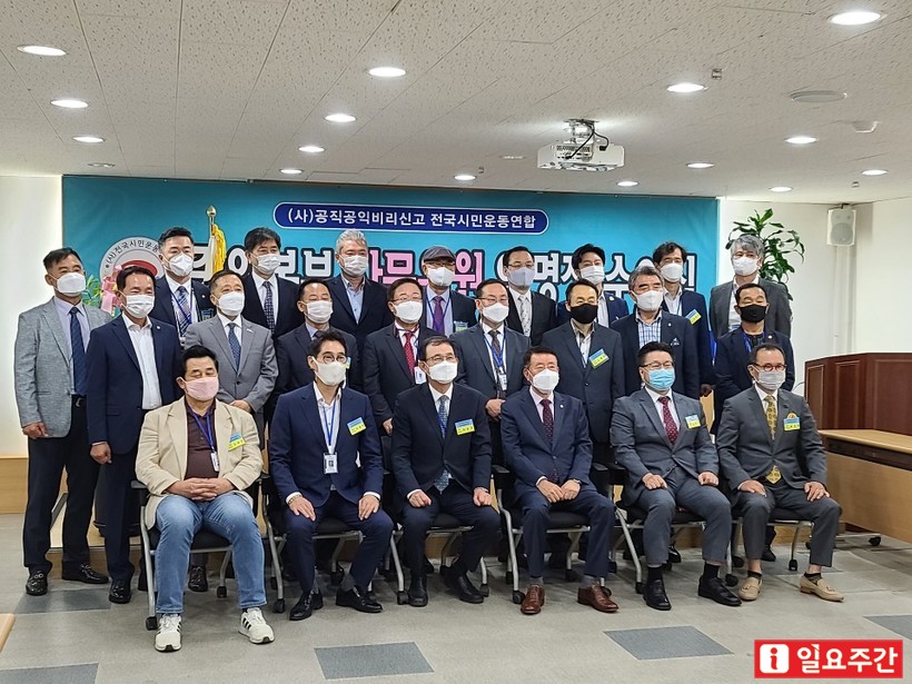 [일요주간 = 노가연 기자] (사)공직공익비리신고 전국시민운동연합(이하 공신연)은 22일 오전 11시 서울 서초구 대한주차산업협회 사무실에서 중앙본부 자문위원 임명장 수여식을 가졌다.
