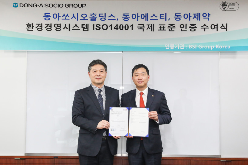 [일요주간 = 하수은 기자] 동아쏘시오그룹은 동아쏘시오홀딩스, 동아에스티, 동아제약 3개사 본사영역이 영국왕립표준협회(BSI : British Standards Institution)로부터 국제표준화기구 기술위원회에서 제정한 환경경영체제 국제표준인 ISO14001 인증을 획득했다고 5일 밝혔다.