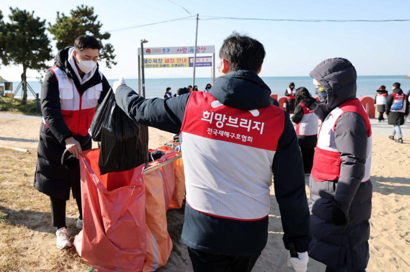 [일요주간 = 김성환 기자] 희망브리지 전국재해구호협회(회장 임채청)가 임직원 40여 명과 함께 인천 왕산해수욕장에서 플라스틱 제로 비치 클린 캠페인을 진행하며 ESG 실천 문화를 확산했다.