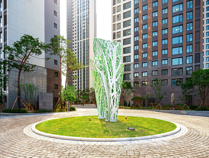| ▲ 두산위브더제니스 센트럴 여의에 설치된 권치규 작가의 ‘교감’. (사진=두산건설 제공) |