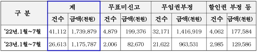 ▲ 올해 부정 승차 건수 전년 대비 35% 감소(표=서울교통공사) |