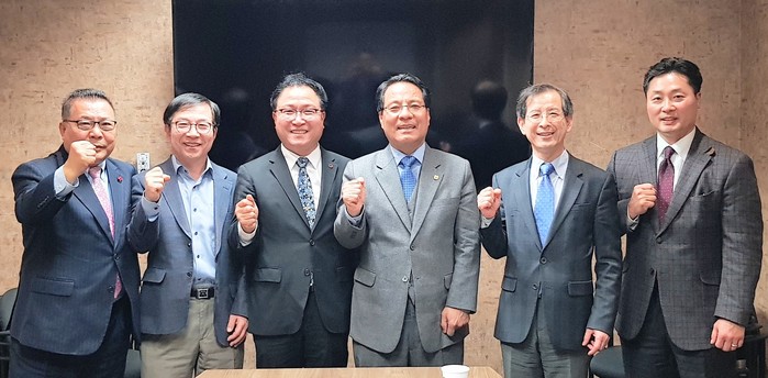 | ▲ 실리콘밸리한인상공회의소 김원걸회장(왼쪽 세번째) 한남대 이덕훈총장(오른쪽 세번째) |
