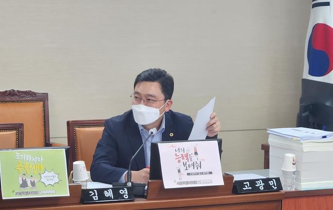 현재 교육위원회 부위원장직을 맡고 있는 고광민 서울시의원(국민의힘, 서초구3)은 지난 11일 개최된 교육위원회 행정사무감사 자리에서 서울시교육청 교육행정국장을 상대로 마이너스 금리 적용 등 서울시교육청의 금고 지정 및 운용 방식을 질타했다.