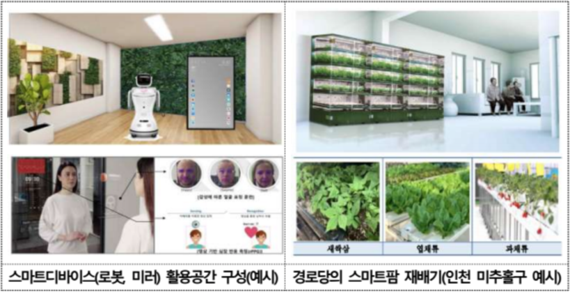 ‘디지털경로당’을 구축해 지능형 전광 유리(스마트미러)를 활용한 건강관리, 인공지능(AI)로봇과 함께하는 치유돌봄(힐링케어)서비스, 가상세계(메타버스)체험 공간 구성을 통해 고령층의 스마트기기에 대한 거부감을 해소한다는 계획이다.
