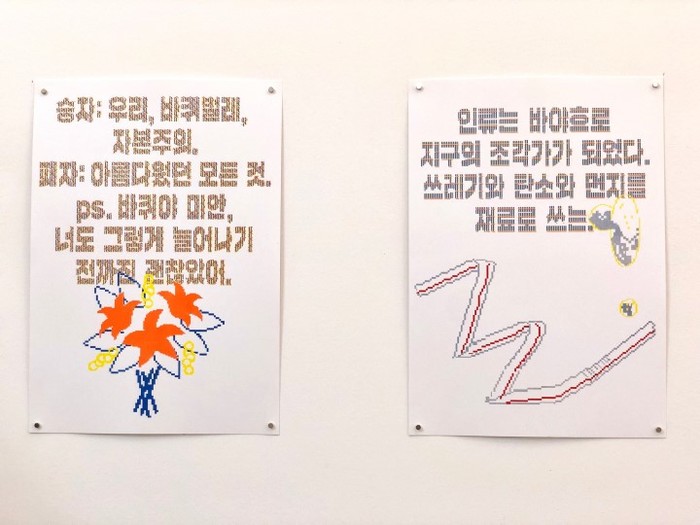 | ▲ 날씨 포스터 <인류세 2019> : 환경운동가이자 시인인 김한민과 디자이너 김희애가 참여해 제작한 20장의 포스터는 기후변화를 둘러싼 전형적인 정치적 담론으로부터 벗어나, 기후변화가 현재 일어나고 있는 현실이라는 점을 가까이 받아들이도록 한다. 관객들은 라운지 프로젝트 온라인 플랫폼에서 각각의 포스터를 다운로드 한 후 소장할 수 있고, 자신의 일터나 카페, 학교 식당 등 곳곳에 배포해이미지들을 널리 유통시킬 수도 있다. 관객들의 이러한 직접적인 개입으로 이미지들은 다각적으로 해석될 수 있다.(사진출처=디어아마존 웹사이트/주최 : 일민미술관) |