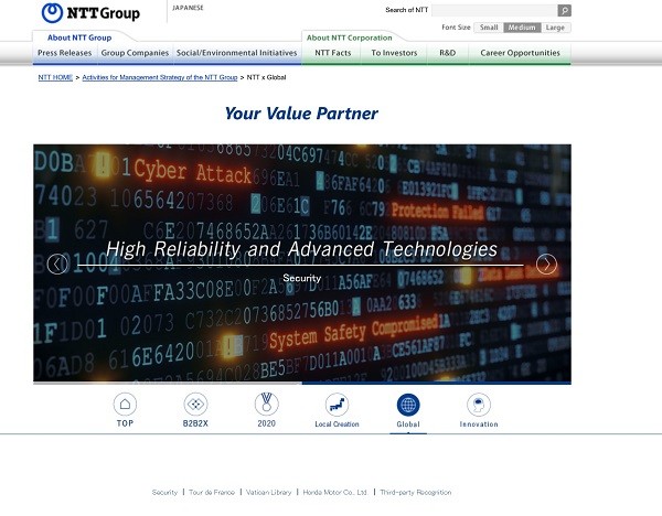 ▲ NTT 홈페이지 캡처. |
