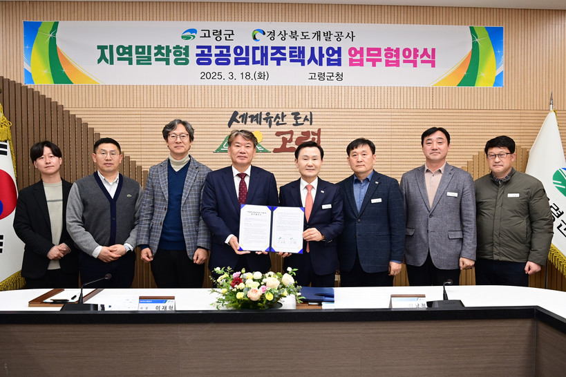 [일요주간=최부건 기자] 고령군(군수 이남철)은 2024년, 2025년 2년 연속 지역밀착형 공공임대주택사업에 선정되어 원활한 사업추진을 위해 2025년 3월 18일 경북개발공사와 지역밀착형 공공임대주택사업 업무협약을 체결하였다.