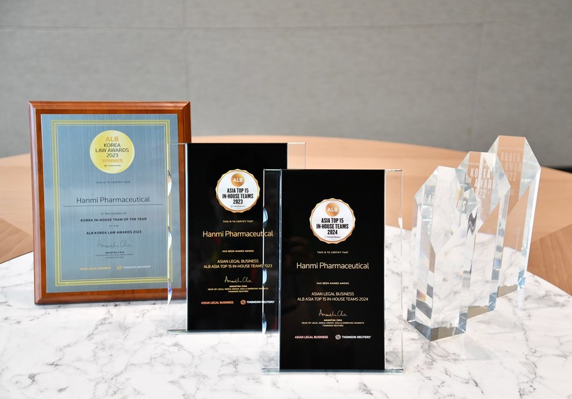 앞서 한미약품 법무팀은 ALB가 주최한 ‘ALB Law 코리아 어워즈’에서 2022년에는 ‘올해의 혁신 법무팀(Innovative In-house Team of the Year)’과 ‘올해의 ESG 분야 법무팀(ESG In-house Team of the Year)’ 2개 부문에서 수상했으며 2023년에는 국내 기업 법무팀 중 단 한 팀만이 선정되는 ‘올해의 법무팀(Korea In-house Team of the Year)’에 선정되는 영예를 안은 바 있다.