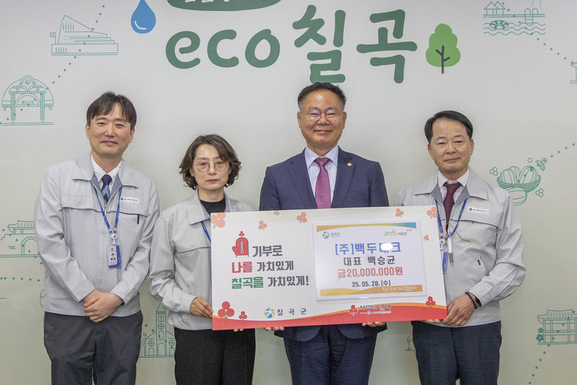 [일요주간=최부건 기자] 지난 28일 관내 방위산업기업인 (주)백두테크(대표 백승균)는 칠곡군에 이웃사랑 성금 2,000만원을 기탁했다고 밝혔다.