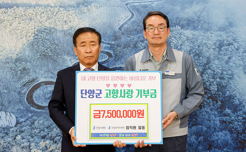 [일요주간 = 김성환 기자] 한일시멘트와 한일현대시멘트 임직원들은 지난 28일 단양군청을 방문해 고향사랑기부금 750만 원을 전달했다고 밝혔다.