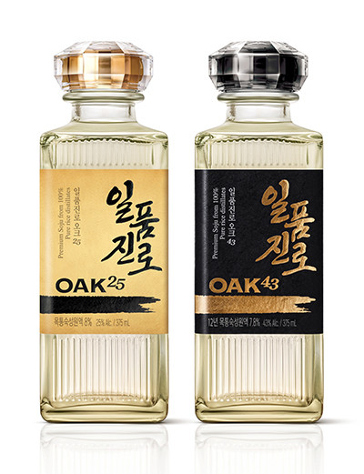 ‘일품진로 오크25’와 ‘일품진로 오크43’은 국내 최대 규모의 목통 숙성고에서 장기 숙성된 원액을 블렌딩해 완성한 고품질 증류식 소주다. 이번 리뉴얼은 라벨과 병뚜껑 디자인 및 색상 변경에 초점을 맞췄다.
