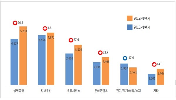 ▲ 2019년 상반기 업종별 벤처투자 현황 (단위:억원). ⓒ중소벤처기업부 |