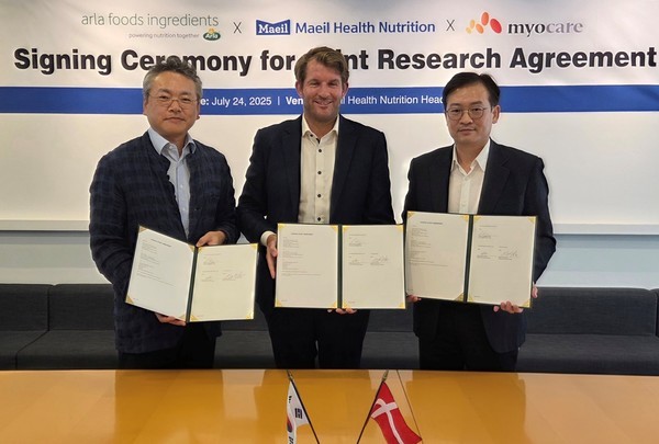 매일유업의 자회사 매일헬스뉴트리션(대표 박석준)은 지난 24일, 덴마크의 알라푸드인그리디언츠(AFI), 그리고 스타트업 마이오케어와 함께 ‘베타-락토글로불린(BLG)’ 기반의 기능성 원료 개발을 위한 공동 연구 계약을 체결했다고 29일 밝혔다.