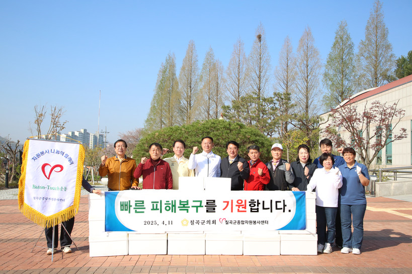 [일요주간=최부건 기자] 칠곡군의회(의장 이상승)는 지난 11일, 칠곡군 종합자원봉사센터 주관으로 지역의 여러 기관·단체가 참여하는 ‘자원봉사 릴레이 바톤 터치 운동’에 동참했다. 이날 군의회 의원들과 의회사무국 직원들은 최근 경북 지역 산불로 피해를 입은 이들을 돕기 위해 청송군에 방문하여 이재민의 아픈 마음을 따뜻하게 어루만져주었다.
