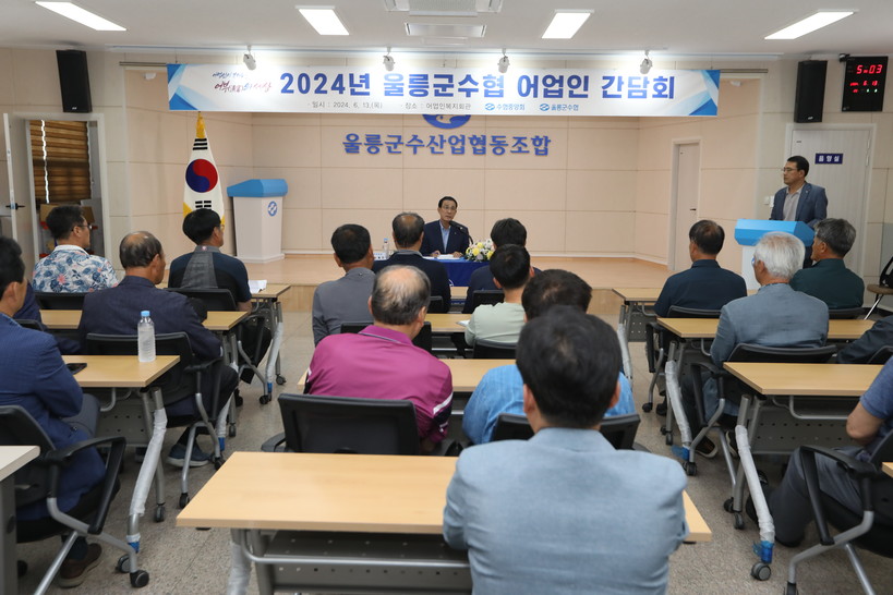 ▲ 노동진 수협중앙회장은 지난 13일 울릉군 수협에서 어업인 간담회를 열고 현장에서의 어업인들의 목소리를 듣고 있다. (사진=수협 제공) |