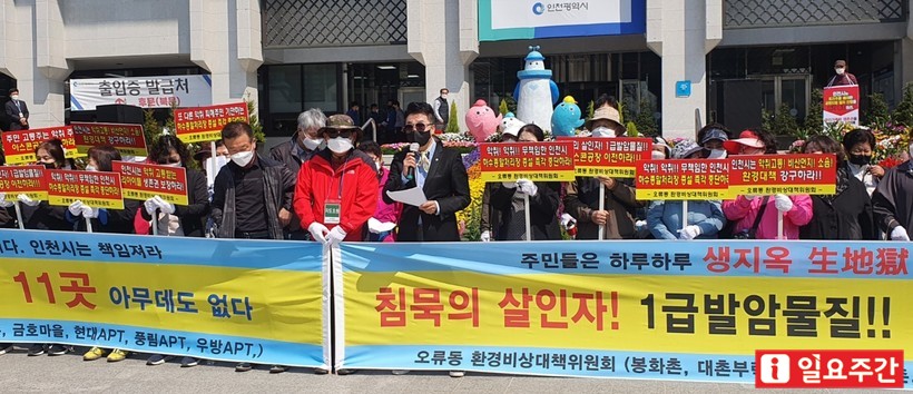 [일요주간 = 김성환 기자] 인천 서구 오류동 환경비상대책위원회와 글로벌에코넷, 인천 행·의정 감시네트워크 등의 환경단체들이 발암물질·악취를 발생시키는 아스콘 공장과 하수종말처리장 이전을 촉구하고 나섰다.