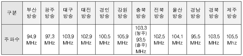 ▲ 도로교통공단 TBN교통방송 지역별 주파수 (표=도로교통공단) |