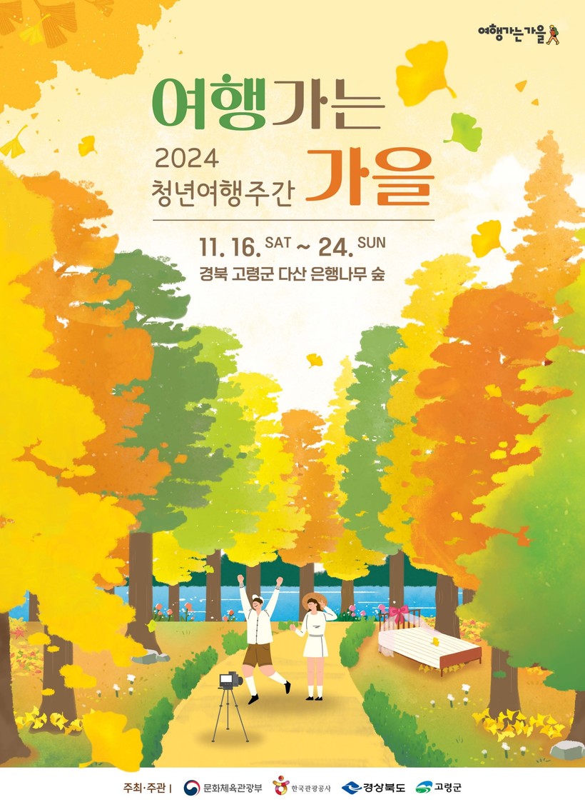 이에 맞춰 고령군은 ‘청년여행주간’을 설정하여 가을여행의 명소 ‘다산 은행나무숲’ 일원을 대상으로 9일간 관광홍보 캠페인을 펼치게 되었다. 특히, 이번 여행주간을 ‘청년여행주간’으로 설정한 것은 젊은 고령을 군정목표로 하고 있는 고령군의 의지를 반영한 것으로 가을시즌 인스타 성지이자 드라마촬영지로 부상된 ‘다산 은행나무숲’을 대상지로 젊은 여행객을 유치하기 위함이다.