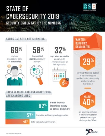 비영리 글로벌 단체인 ISACA가 발표한 ‘2019년 사이버보안 현황’ 보고서에 따르면, 기업들은 경쟁 업체가 더 나은 임금과 상여금을 제공하면서 전문 인력을 빼가고 있어 힘들어하는 것으로 나타났다.
