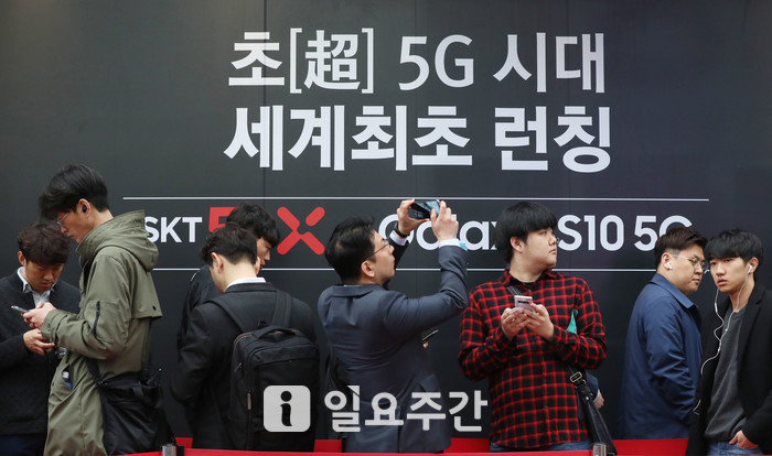 ▲ 지난 5일 서울 강남구 SK텔레콤 강남직영점에서 갤럭시 S10 5G를 개통하기 위해 시민들이 대기하고 있는 모습. |