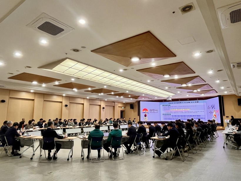 [일요주간=최부건 기자] 김천시(시장 배낙호)는 27일 시청 3층 강당에서 ‘2025년 실적 정부합동평가(시군평가) 추진상황 보고회’를 열고 전 부서의 실적 점검과 향후 대응 방안을 논의했다.