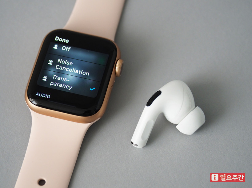 ▲애플워치에 연결된 에어팟 프로 (사진=지혜수 기자) |