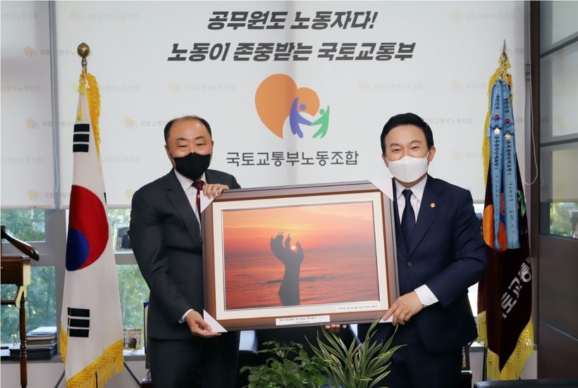 ▲국토교통부노동조합 최병욱 위원장(좌)과 원희룡 국토부 장관(우).(사진=국토부노조 제공) |