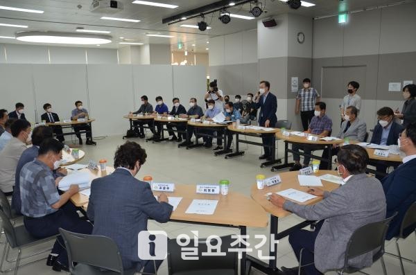 ▲8월 31일 오후 4시, 현대아울렛 6층 시민청에서 열린 폭우피해대책위원회와 금천구청 관계자들 간 간담회.(사진=조무정 기자)