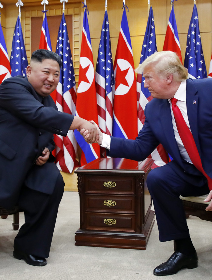 ▲ 도널드 트럼프 미국 대통령과 김정은 북한 국무위원장이 지난달 30일 판문점 자유의 집에서 북-미 정상회담을 하기 전 악수하고 있다.ⓒnewsis |