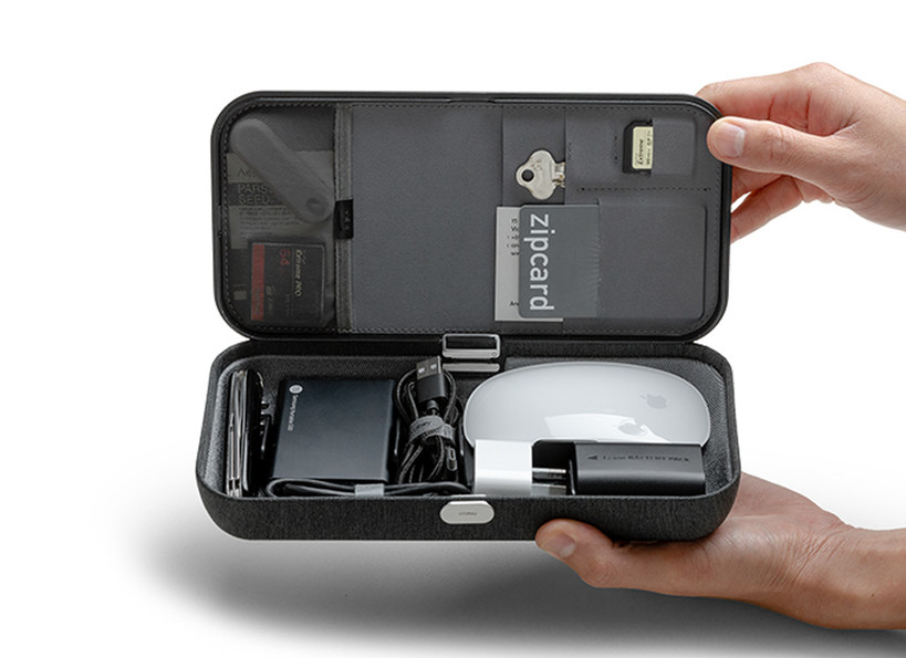 오빗키 네스트는 데스크 오거나이저뿐 아니라 케이스의 역할을 겸비해, 마우스와 케이블, 메모리, 외장하드 등의 소품을 담아 휴대하기 편리하다. 뚜껑을 열면 위쪽에 여러 개의 포켓이 있고 아래쪽 공간도 이동 가능한 미니 디바이더가 있어 간편하게 정리할 수 있다.