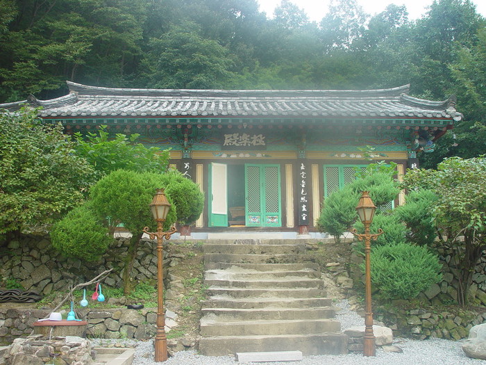 극락전은 1959년에 건립된 맞배지붕에 정면 3칸, 측면 3칸 규모의 주심포 익공계 건물이다. 청동아미타불이 모셔져 있으며, 아미타후불탱을 중심으로 좌우로 지장탱, 신중탱이 모셔져 있다. 아미타후불탱과 신중탱은 1988년 조성했다.